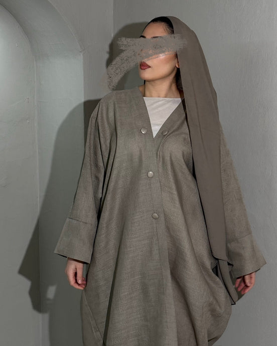Minimalist Grey Linen Abaya | Button Sleeve Design (No Inner Dress)