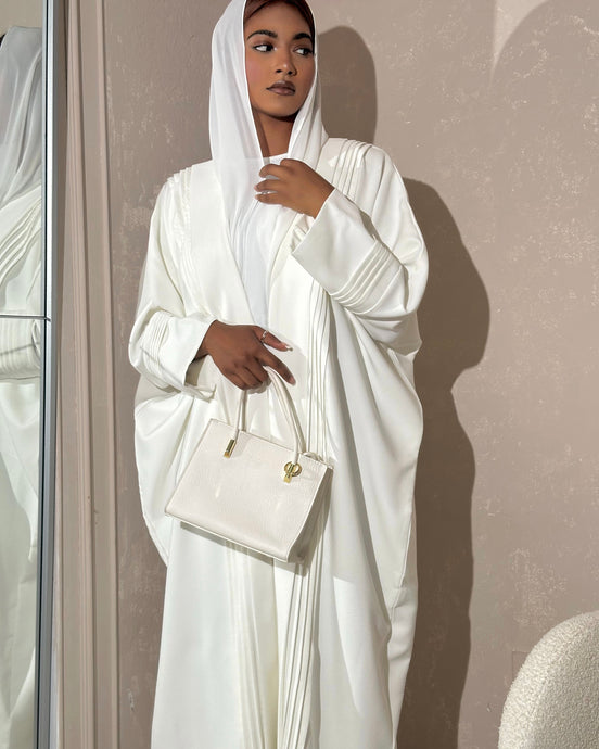Pleated Butterfly Abaya & Inner Dress (Off-White)