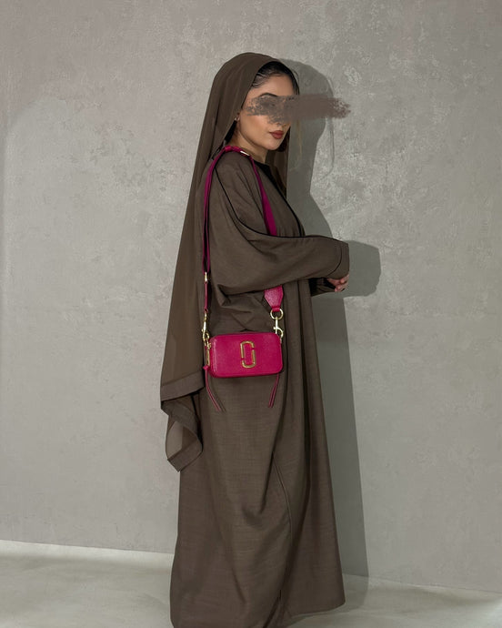 Italian Linen Abaya Set (Brown)