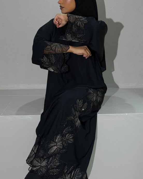 Patterned Open Abaya in Black (No Inner Dress)