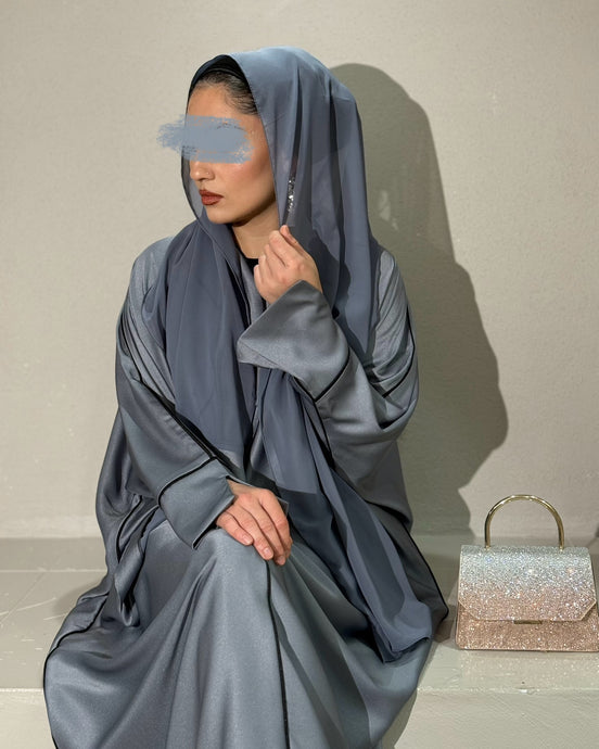 Closed Shimmery Satin Abaya with Piping (Grey)