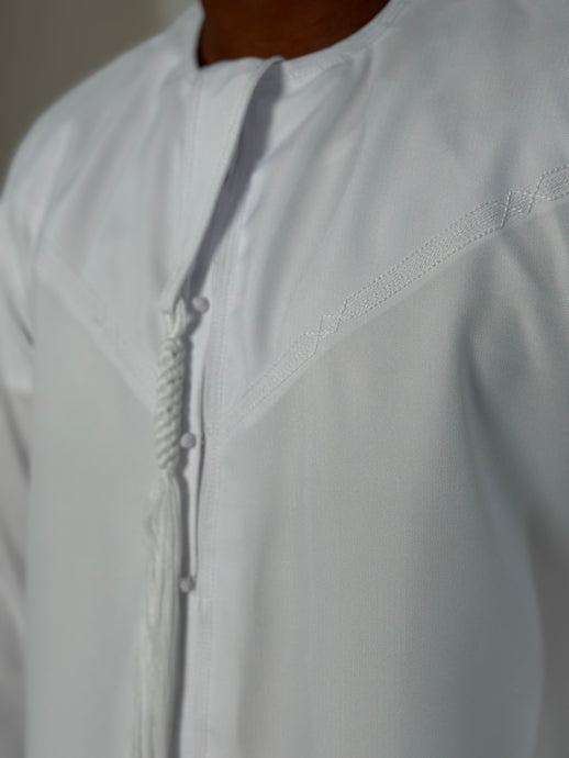 Emirati Omani Thobe with Zip and Tassel (Off-White)