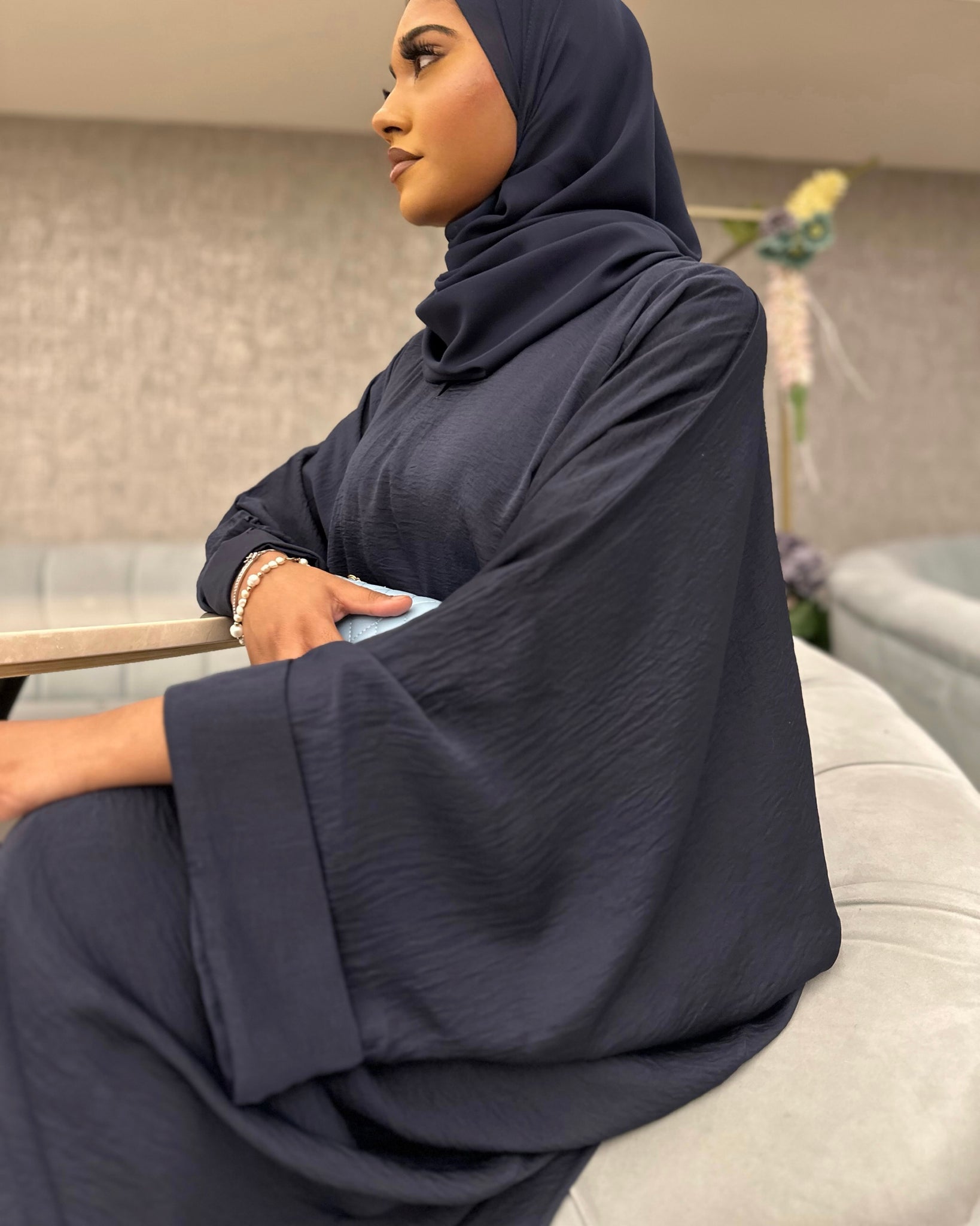 The abaya is a gorgeous unique colour of berry (between a navy and an indigo).