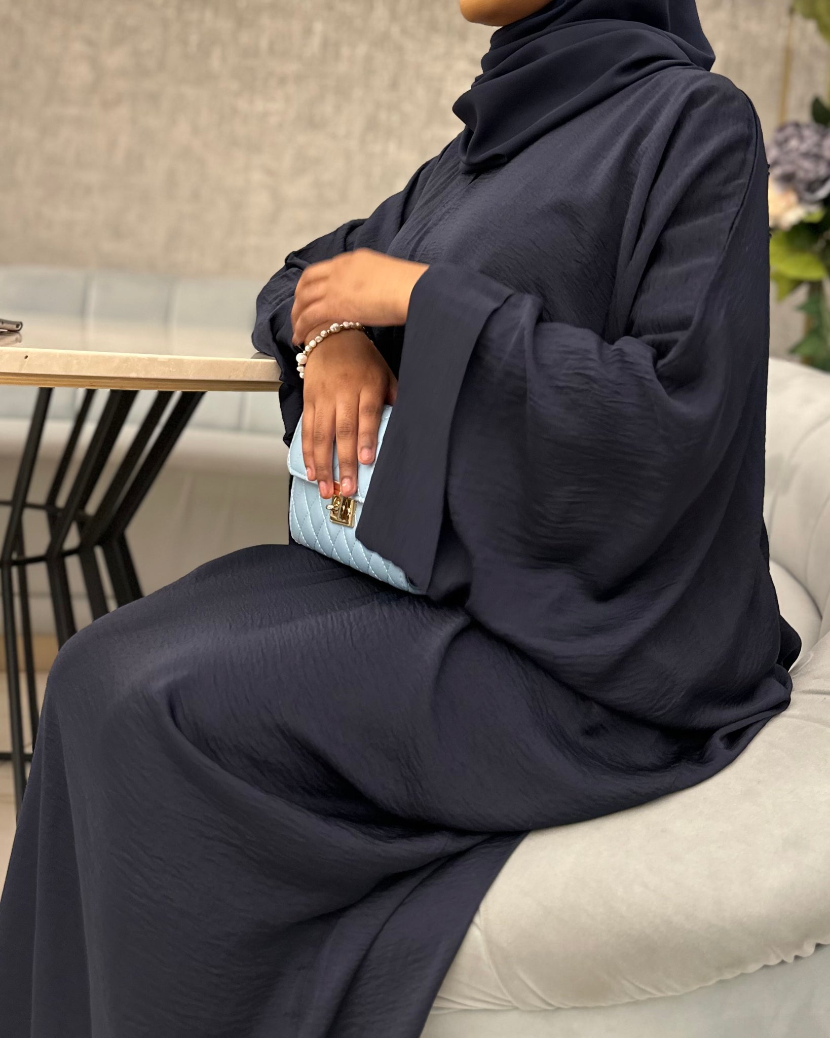 Welcome to our most versatile abaya from our whole entire collections. This fully closed Farasha (butterfly cut) abaya is made of a very lightweight yet durable fabric, that will keep you cool in those warmer days. The best abaya to wear during Umrah or Hajj as the fabric is lightweight and does not retain heat. It’s very versatile and can also be worn while running errands or even styling it up for a more formal event.