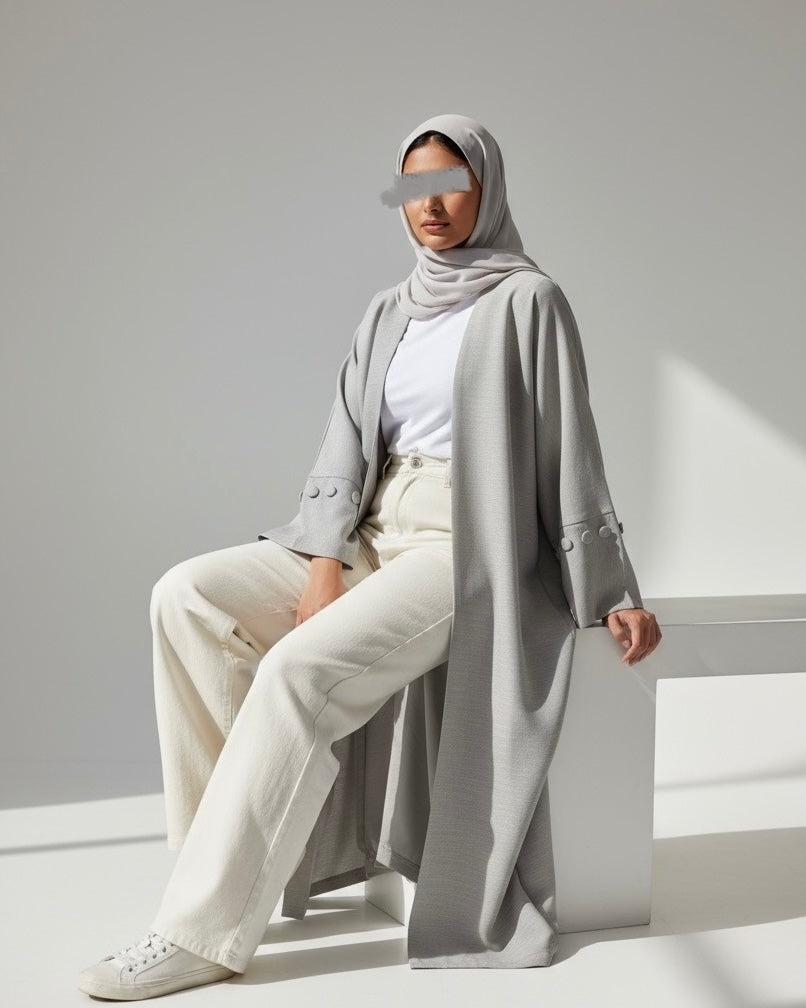 This Grey Abaya is crafted from premium 100% pure linen, designed to bring together timeless elegance and modern detailing. The soft linen drapes beautifully, giving a relaxed yet refined silhouette that works effortlessly for both casual days and more polished occasions.